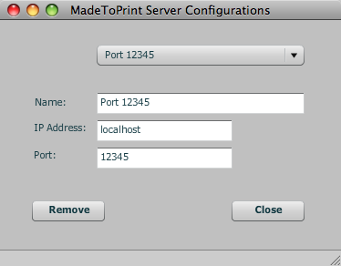 In diesen Einstellungsfenster können Sie Verbindungen hinzufügen. Wenn Sie mehrere Instanzen von MadeToPrint Server laufen haben, dann müssen Sie für jede dieser Instanzen eine Verbindung einstellen.